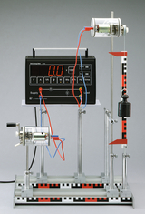 The DynaMot consists of an electric motor with flanged, low noise gearing box, housed in a transparent Plexiglas case with 4 mm socket terminals, crank and pulley, interchangeable, mounted on square section, nickel-plated steel rod.